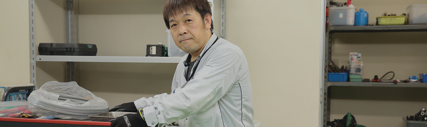 20代の頃は自分に合った仕事が見つからず、職を転々としていました。そして、入江電機工業所に就職したのが30歳の頃。入社の動機は、機械いじりが好きで、技術職に興味があったことです。ただ、それまで電気関係の仕事には就いたことが無く、電気に関することは入社してから勉強しなければなりませんでした。