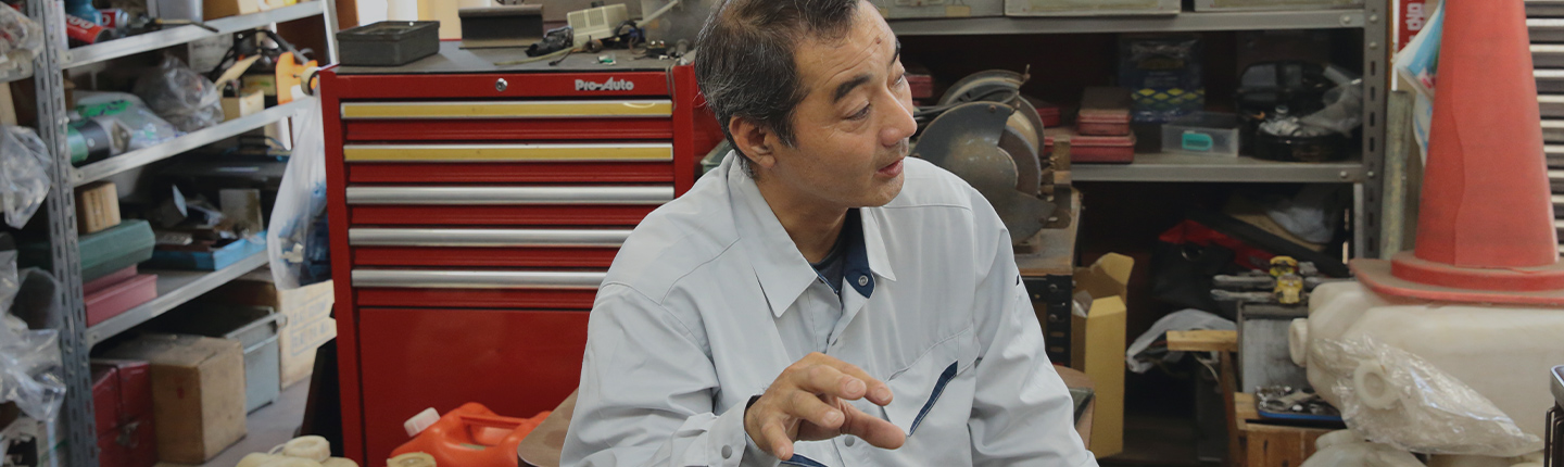 それは、いろんな製品を扱うことができるから。自分が好きなクルマ関係では、エアコンの 取り付けやエンジンを起動させるセルモーターの修理、当時は大きな砕石所の仕事もしていたので、砕いた石を運ぶベルトコンベアやフォークリフトなどの電気系統の仕事もありました。