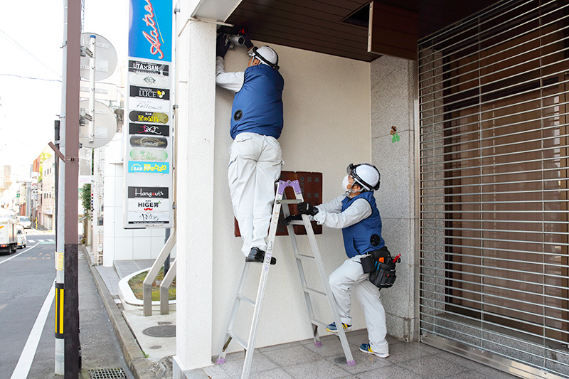 照明や空調設備などの電気製品はもちろん、映像を外部のパソコンなどで確認できるネットワーク監視カメラの取り付けにも対応しています。