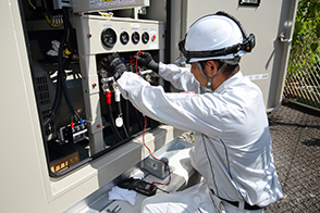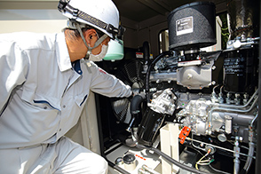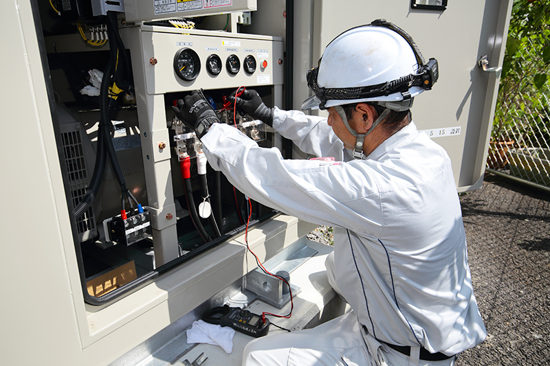 具体的には、官公庁の建物、美術館、博物館、コンサートホール、工場、病院等に設置された非常用自家発電設備や蓄電池設備の設置、点検、修理を行っています。